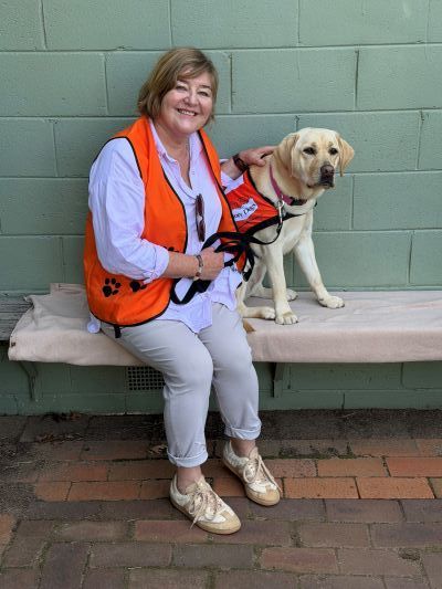 How we met: I was 'Kitana's puppy raiser and when she was classified as not suitable for guide dog work, I was able to purchase to specifically do work with Story Dogs