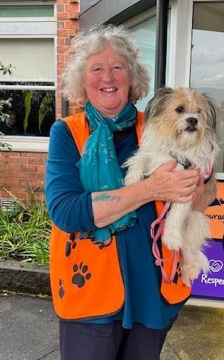 Debbie and 'Tilly' help children at Scottsdale Primary School