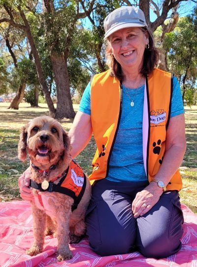 Jo and 'Nala' help children at St Damien's Catholic College, Dawesville