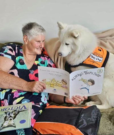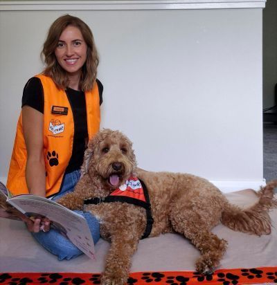 Anna and 'Shiloh' help children at New Lambton South Public School